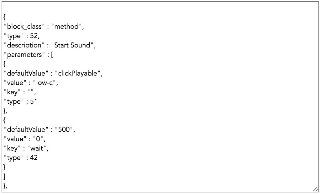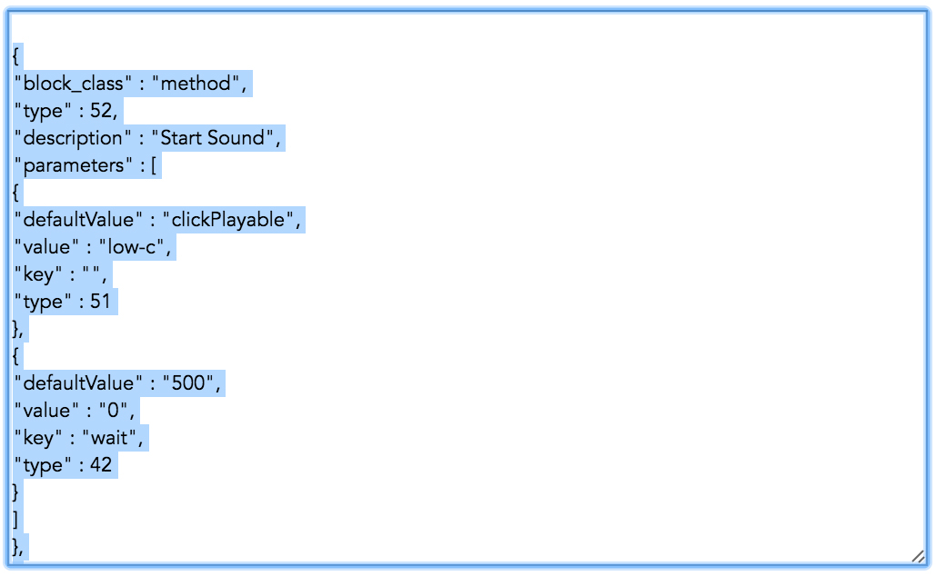 11. The Hopscotch JSON code will be generated in the text field.