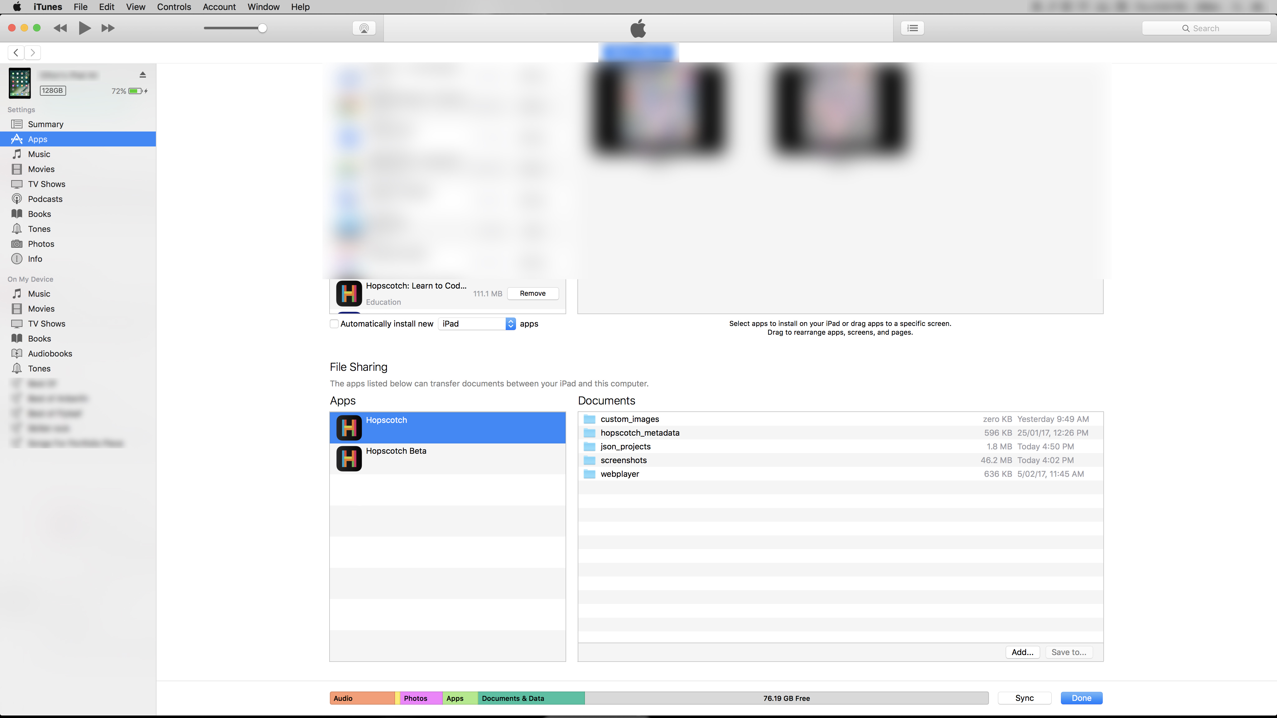 7. Click on Hopscotch. Under Hopscotch Documents, click on the “json_projects” folder.